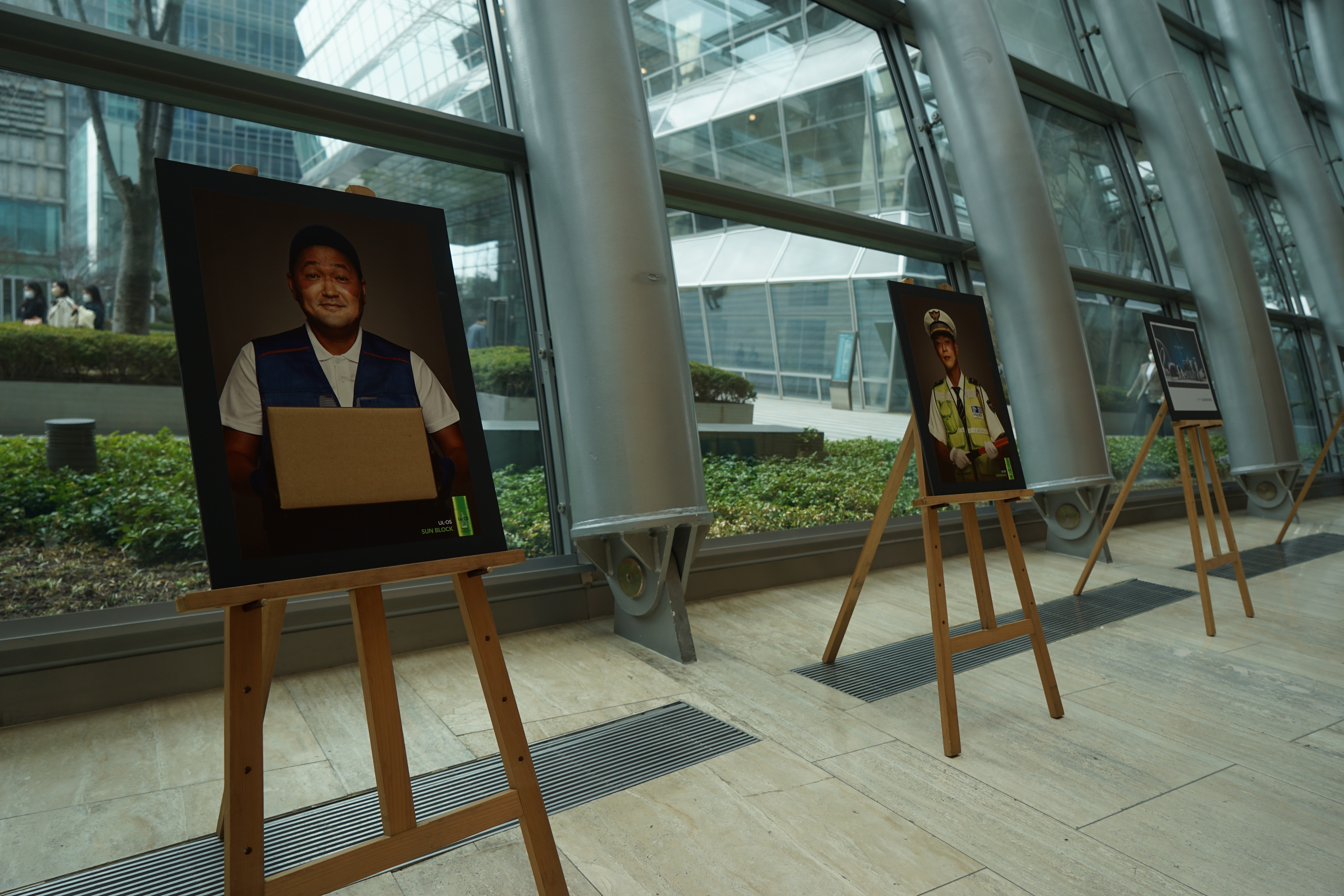 지금 시대의 사람들에게 설득력 있는 이미지를 고민하던 중 땀에 흠뻑 젖어 있는 의료진의 모습을 보게 됐어요. 마스크와 방호복 자국이 남은 모습을 보고 커다란 컨셉을 먼저 잡았죠. 의료진과 같이 국민들을 위해 밖에서 희생하는 직업을 자연스럽게 생각하게 됐죠. 집콕생활로 더 바빠진 택배·배달기사와 뜨거운 태양 아래에서 하루 종일 서 있는 교통 경찰관이 떠올랐습니다. 그분들을 모델로 하면 선크림을 안 발랐을 때 일어날 수 있는 불상사를 조금 더 공감가게 전달할 수 있을 거라고 판단했어요.
